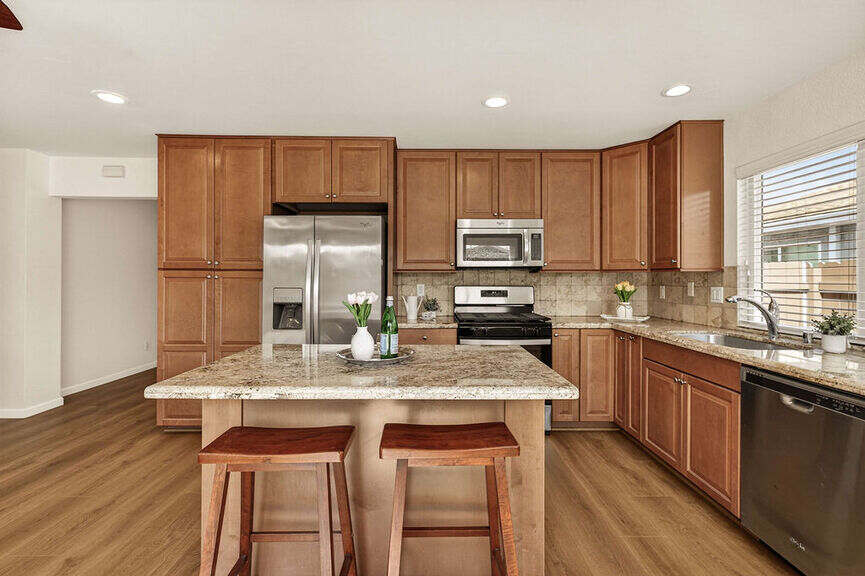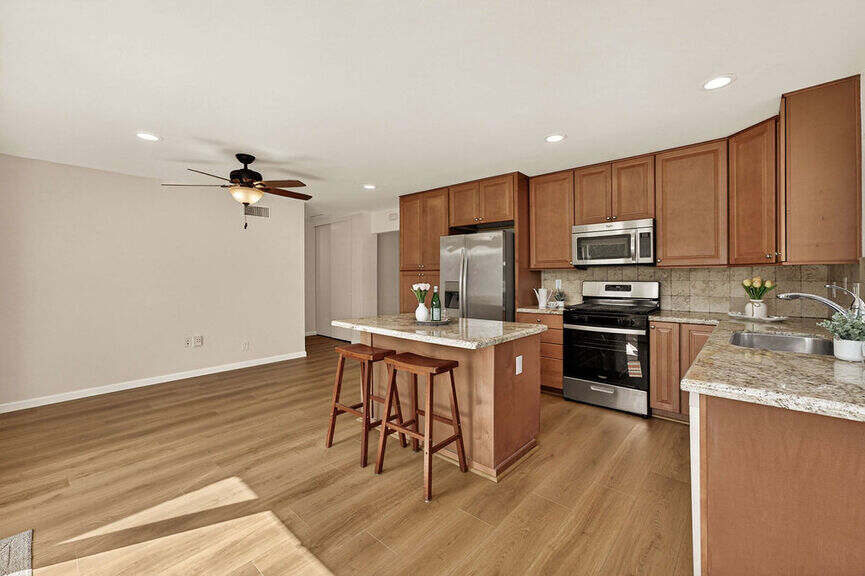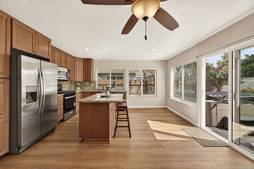 Located in the highly desirable community of Mira Mesa, this move-in ready home offers 3 bedrooms, 2 baths, plus a lovely bright and inviting interior filled with natural light. Recent upgrades include new flooring throughout and a freshly painted interior. The welcoming floorplan features an inviting fireplace in the living room, a primary bedroom with ensuite bath and an attached two car garage with ample storage. A beautiful Jacaranda tree graces the front yard while the spacious backyard offers endless possibilities for gardening, outdoor entertaining or simply relaxing in your own private rereat. Enjoy the benefits of an owned solar system installed in 2016. Centrally located, this home is close to schools, popular restaurants, shopping and all conveniences that make Mira Mesa one of San Diego’s most sought after neighborhoods.